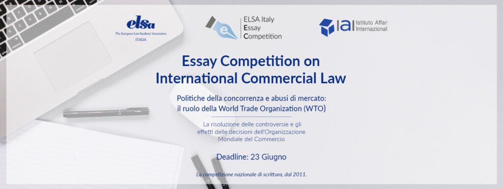 ELSA Italia è orgogliosa di presentare la VI edizione della National Essay Competition 2017, sul tema del Diritto Sportivo. L’Essay Competition è una competizione avente ad oggetto la stesura di un saggio, che consente a ogni partecipante di mettere alla prova le proprie capacità di scrittura e di cimentarsi in una esperienza altamente formativa e preparatoria per le future professioni giuridiche. La VI edizione dell’Essay Competition di […]