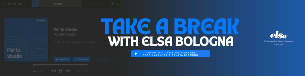 Take a Break with ELSA Bologna rappresenta un’opportunità unica per conoscere più nel dettaglio i vantaggi e le opportunità offerte dall’Associazione, ma soprattutto per incontrarne i membri e creare nuovi legami, che ci auguriamo possano mantenersi nel corso di questi anni universitari (e non solo!!!).