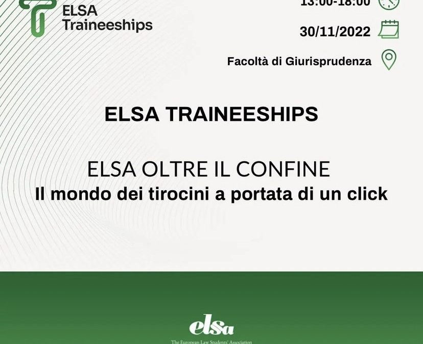 In data 30 novembre presso la Facoltà diGiurisprudenza si è svolto l’evento “ELSA Traineeships” L’esclusivo programma internazionale di tirocini promosso dall’associazione, nel quale si propone ai partecipanti un’esperienza professionale all’estero.