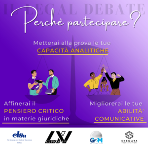 Il vero fulcro dell’evento sarà il Legal Debate che si terrà venerdì primo aprile alle ore 12.00.