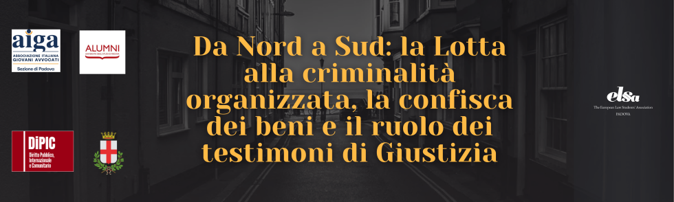 ELSA Padova è estremamente lieta di invitarVi alla Conferenza “Da Nord a Sud: la lotta alla criminalità organizzata, la confisca dei beni e il ruolo dei Testimoni di Giustizia” che si terrà il 3 e il 4 Aprile 2025 sul tema della lotta alla criminalità organizzata, con particolare attenzione al fenomeno mafioso in Nord Italia, e sul ruolo dei Testimoni di Giustizia.