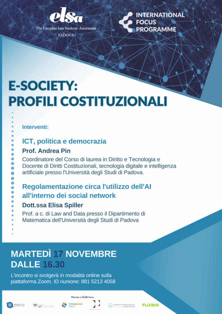Martedì 17 Novembre dalle ore 16.30, si terrà l’evento E-Society: Profili costituzionali programmato in occasione dell’International Focus Programme.