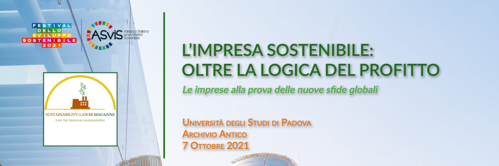 Il 7 ottobre 2021, alle ore 15:00, nel contesto del Festival dello Sviluppo Sostenibile, ne discuteremo con alcuni esponenti di realtà imprenditoriali particolarmente attente al tema della sostenibilità, in occasione del convegno organizzato da Sustainability Law4B Magazine, gruppo di ricerca dell’Università di Padova che si propone di far dialogare le imprese con il mondo accademico.