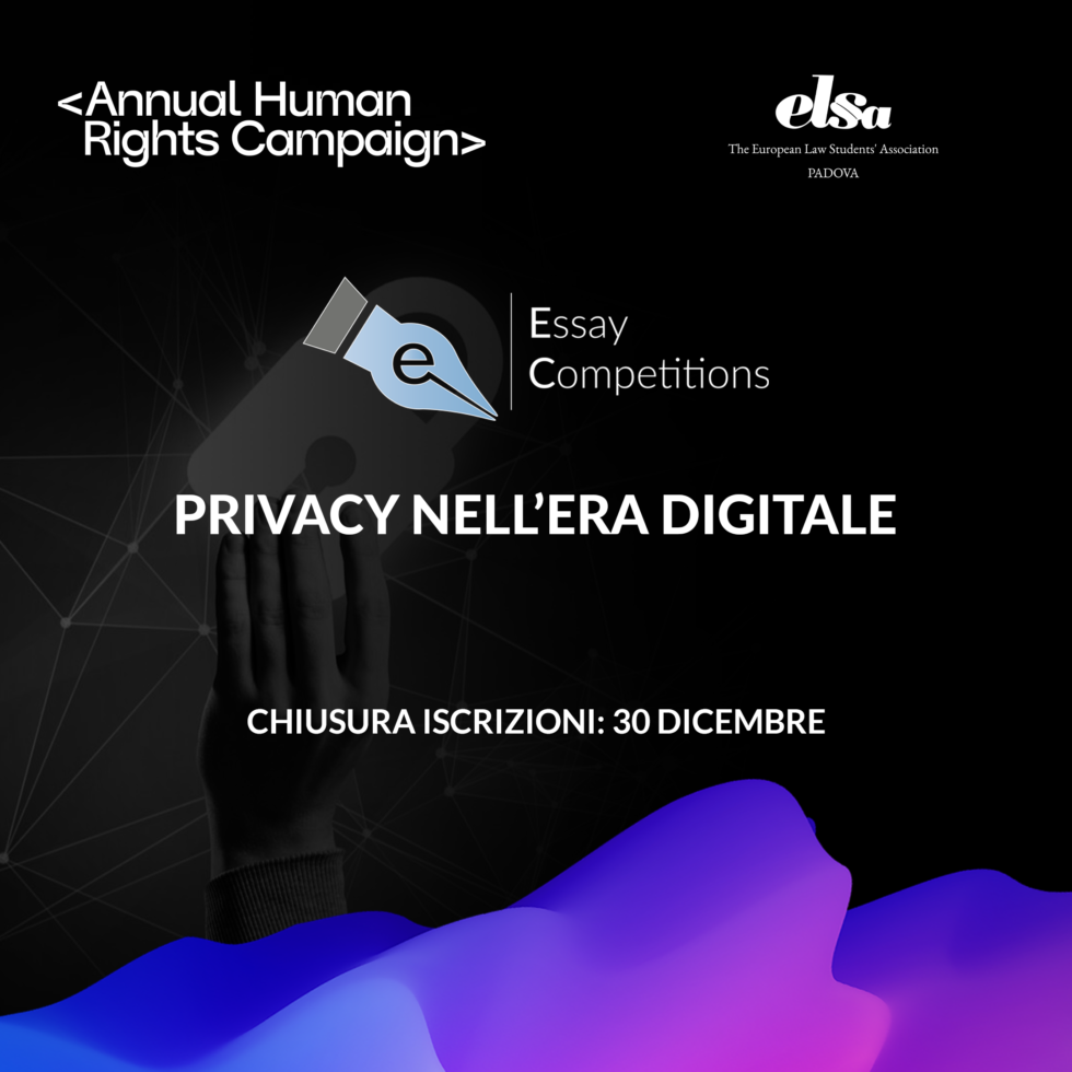 Con grande entusiasmo ELSA Padova è orgogliosa di annunciare l’apertura ufficiale delle iscrizioni della Local Essay Competition organizzata in occasione dell’ELSA Day2021 e, per questo, dedicata al tema “Privacy nell’era digitale”.