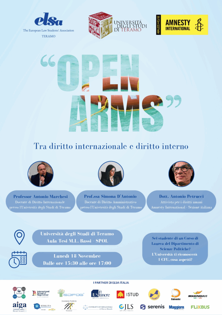 “OPEN ARMS”: Tra diritto internazionale e diritto interno è il primo evento di questo anno sociale.